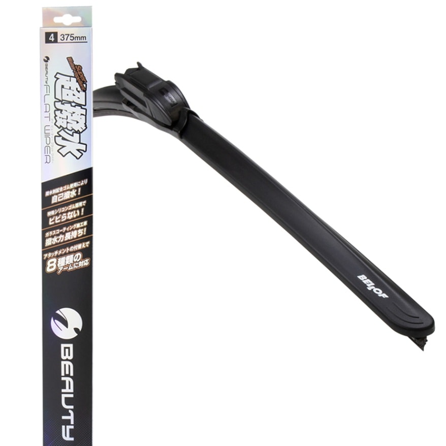375mm (呼番:4) フロント用 撥水ワイパー 輸入車 / 国産車対応 取付アタッチメント付属 アイ・ビューティー Sフラットワイパー [IFW375]