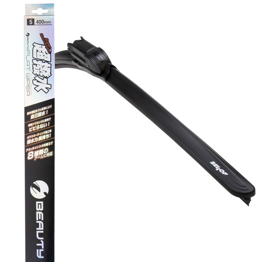 400mm (呼番:5) フロント用 撥水ワイパー 輸入車 / 国産車対応 取付アタッチメント付属 アイ・ビューティー Sフラットワイパー [IFW400]