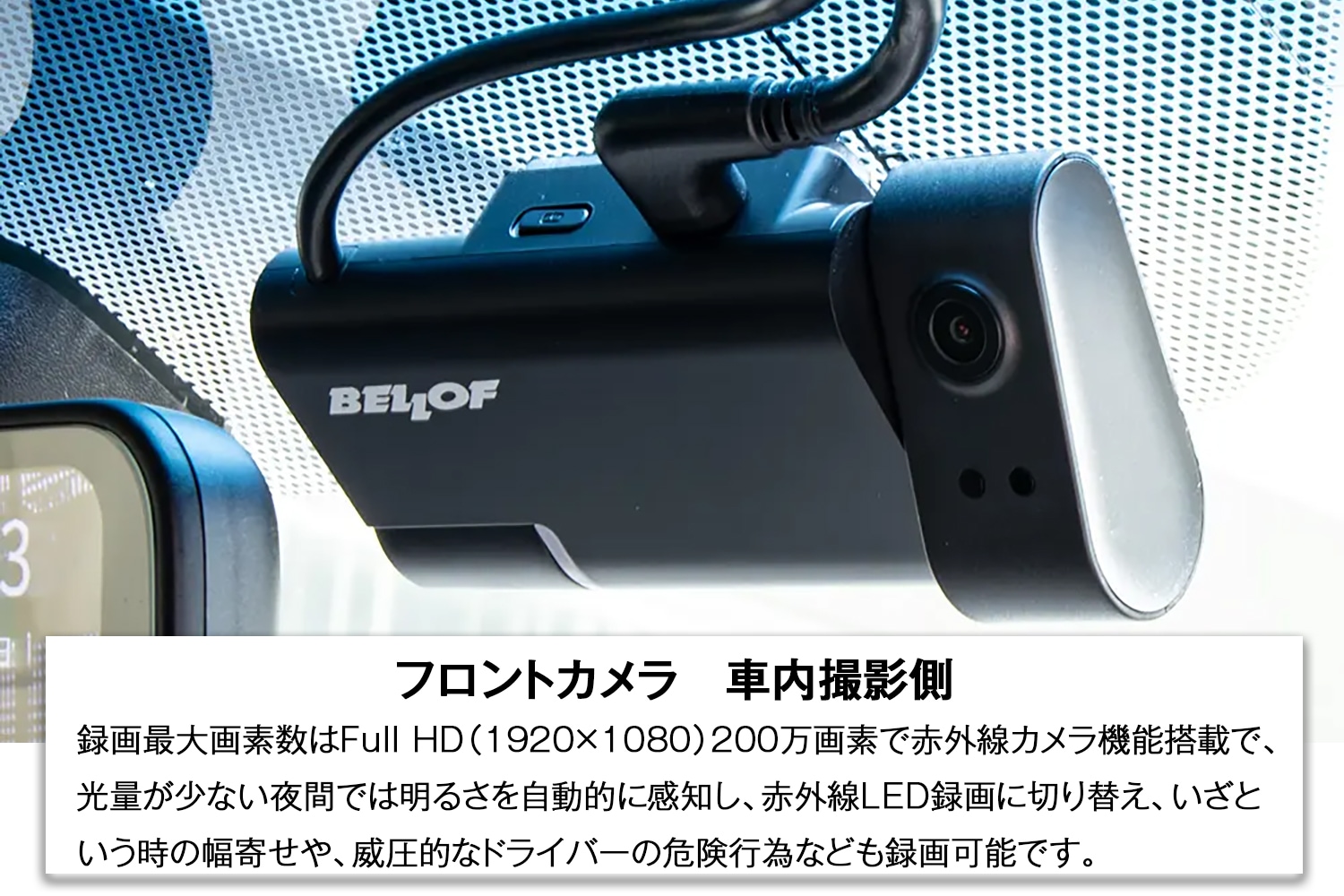 本製品はドライブレコーダーとデジタルルームミラーが一体化し、昼間はもちろん夜間でも車両前後そして車内までを鮮明に同時録画できる次世代型ドライブレコーダーです。