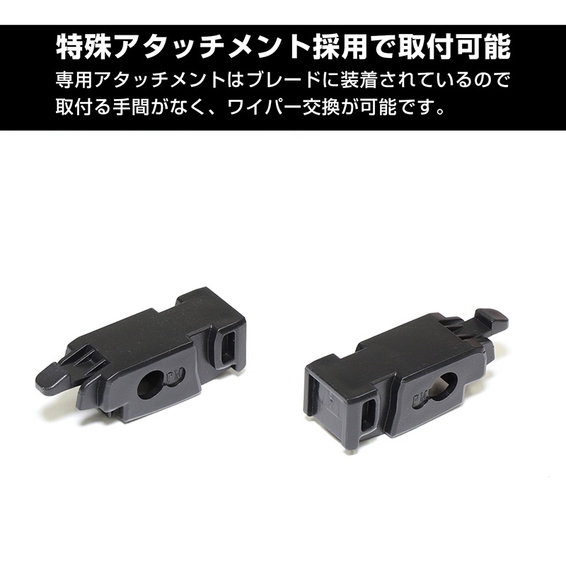 新型の特殊なワイパーアームに対応可能とした専用のアタッチメント付き撥水ワイパーを左右セットにした車種専用ワイパーになります。